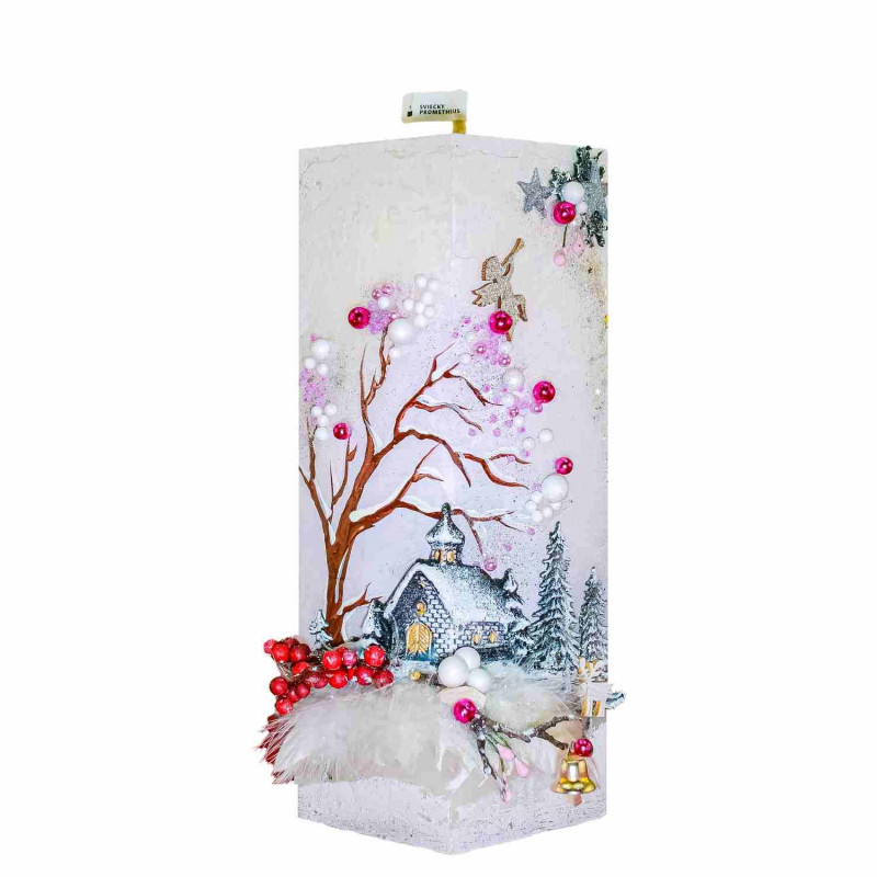 Kváder 1120 g je rozmerovo najväčší spomedzi ,, Kvádrov ", ktoré ponúka výrobca Sviečky-Prometheus. Je to naozaj kus sviečky, ktorý váži takmer 1,2 kg a svojim rozmerom sa nenechá len tak ľahko prehliadnuť. Ručne zdobenie a maľby štetcom vytvárajú originálny motív zimnej krajiny, ktorý dotvárajú prírodné komponenty, ako šišky, kamienky, drevené halúzky či žalude. Dokonale prepracovaný dizajn dodáva sviečke živý nádych a umeleckú hodnotu, ktorou dokáže sviečka očariť aj náročného zákazníka.