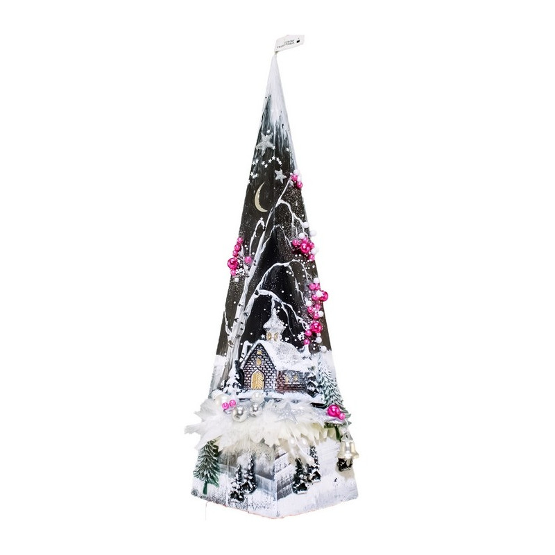 Sviečka s názvom „Pyramída 500 g – zimná krajinka“ od Slovenského výrobcu Sviečky-Prometheus© je parafínová sviečka zdobená dekoratívnym Vianočným motívom. Zdobenie sviečky je precízna ručná práca. Umelecké maľby štetcom dopĺňajú prírodné komponenty ako šišky, žalude, rôzne kamene či vetvičky.
