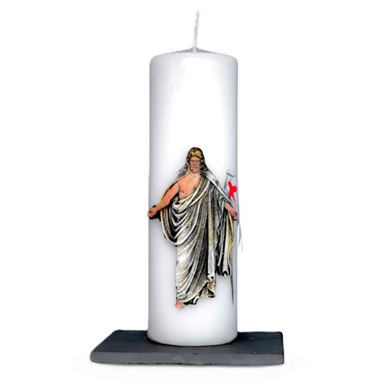 Sviečky Valec 250 g zdobené svätými obrázkami či ikonami svätých sú často nazývané tiež ako kostolné sviečky či oltárne sviečky. Ručne zdobené sviečky s náboženským motívom či sviečky s kresťanským motívom nájdete v našej ponuke pod kategóriou liturgické sviečky. Sviečky od Slovenského výrobcu Sviečky-Prometheus sú jedinečné svojim designom a kvalitou horenia a univerzálnym rozmerom pre stojany a svietniky.
